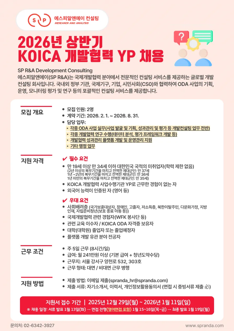 [2025. 12. 24.] 에스피알앤에이(주) 개발컨설팅 YP 채용 공고(진행 중)